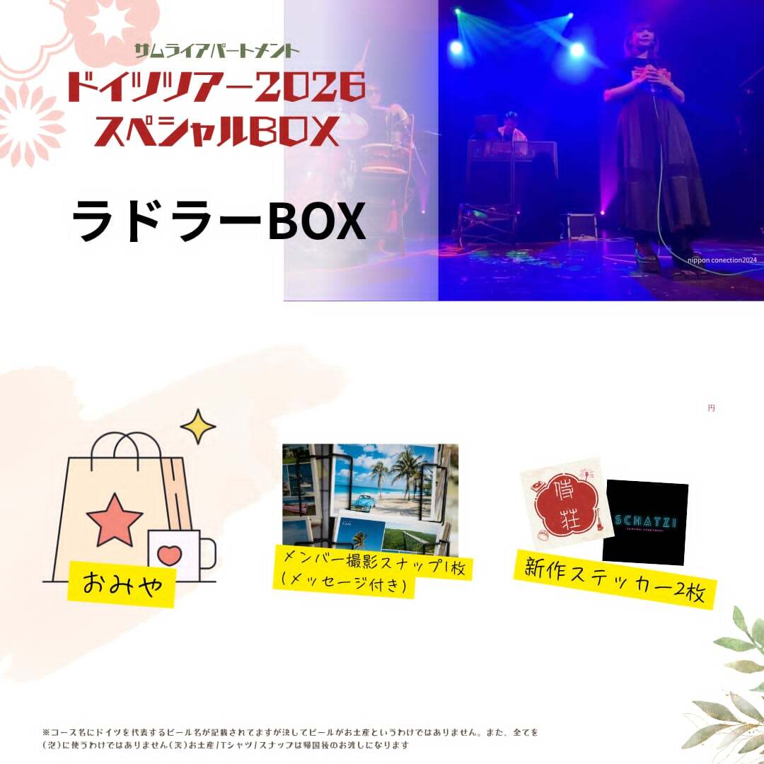 サムライアパートメントドイツツアー2026のツアーグッズなどが入ったスペシャルボックスでサムアパのドイツ公演の成功を皆んなで祈願しよう!