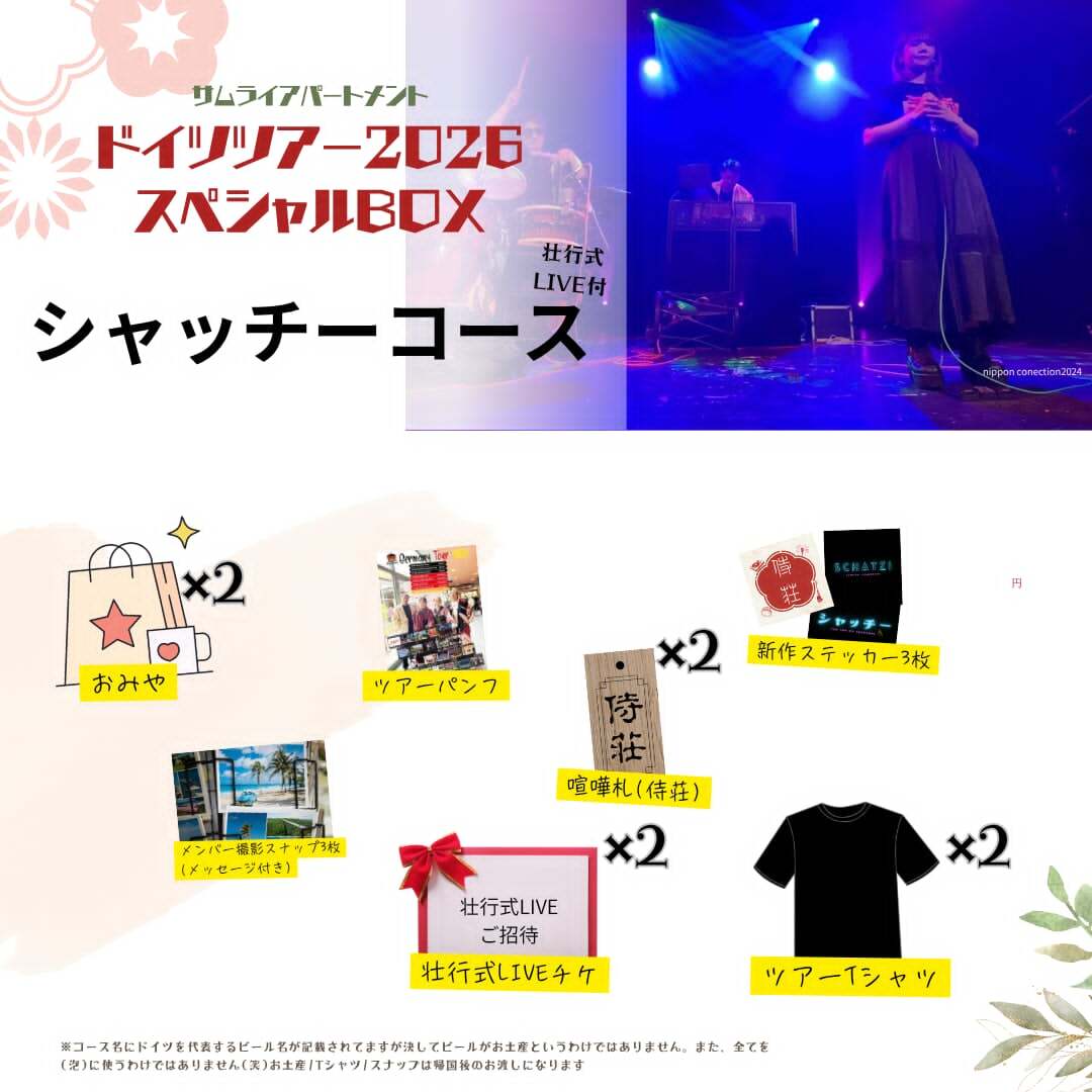 サムライアパートメントドイツツアー2026のツアーグッズなどが入ったスペシャルボックスでサムアパのドイツ公演の成功を皆んなで祈願しよう!